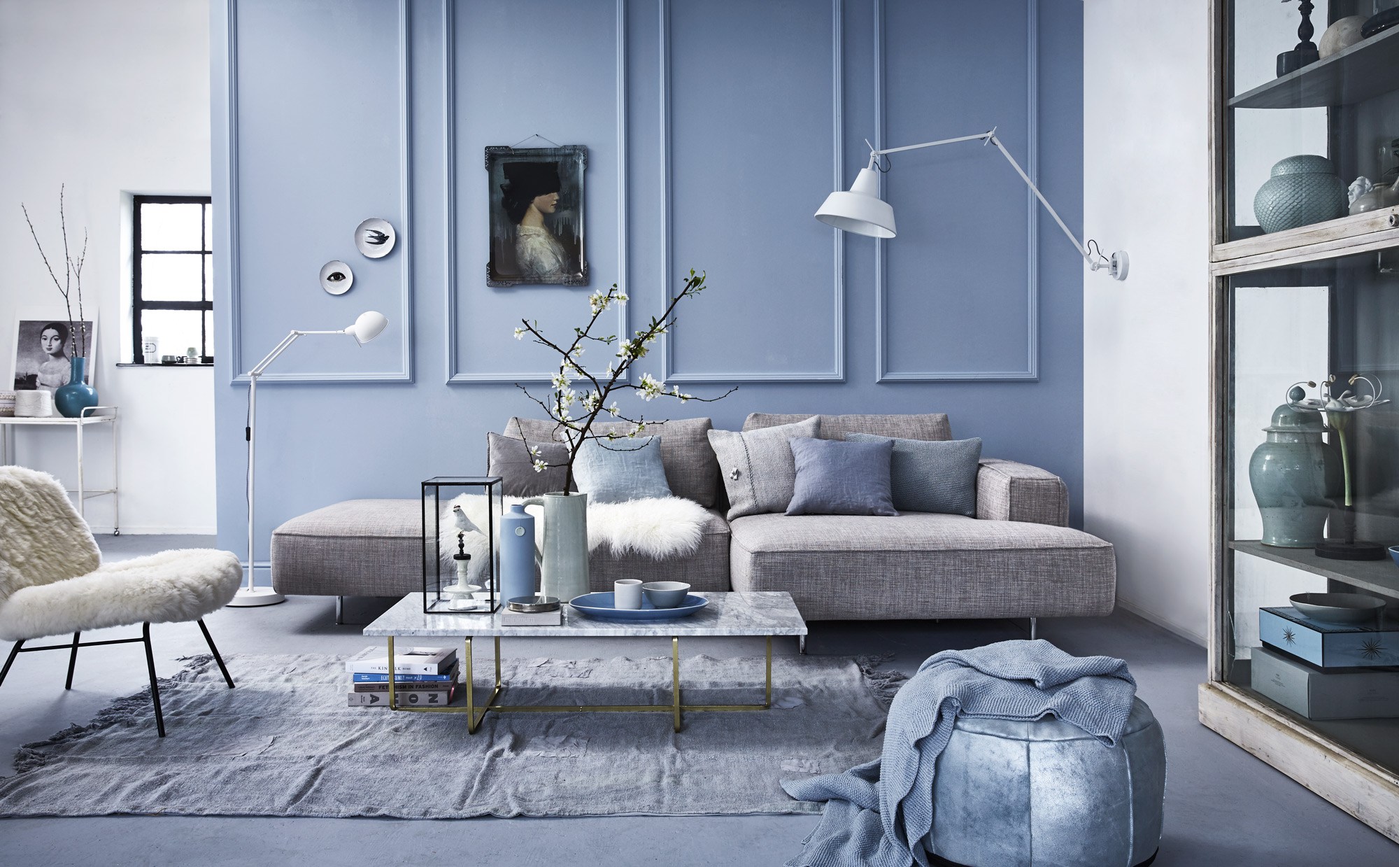 Серо-синий цвет в интерьере