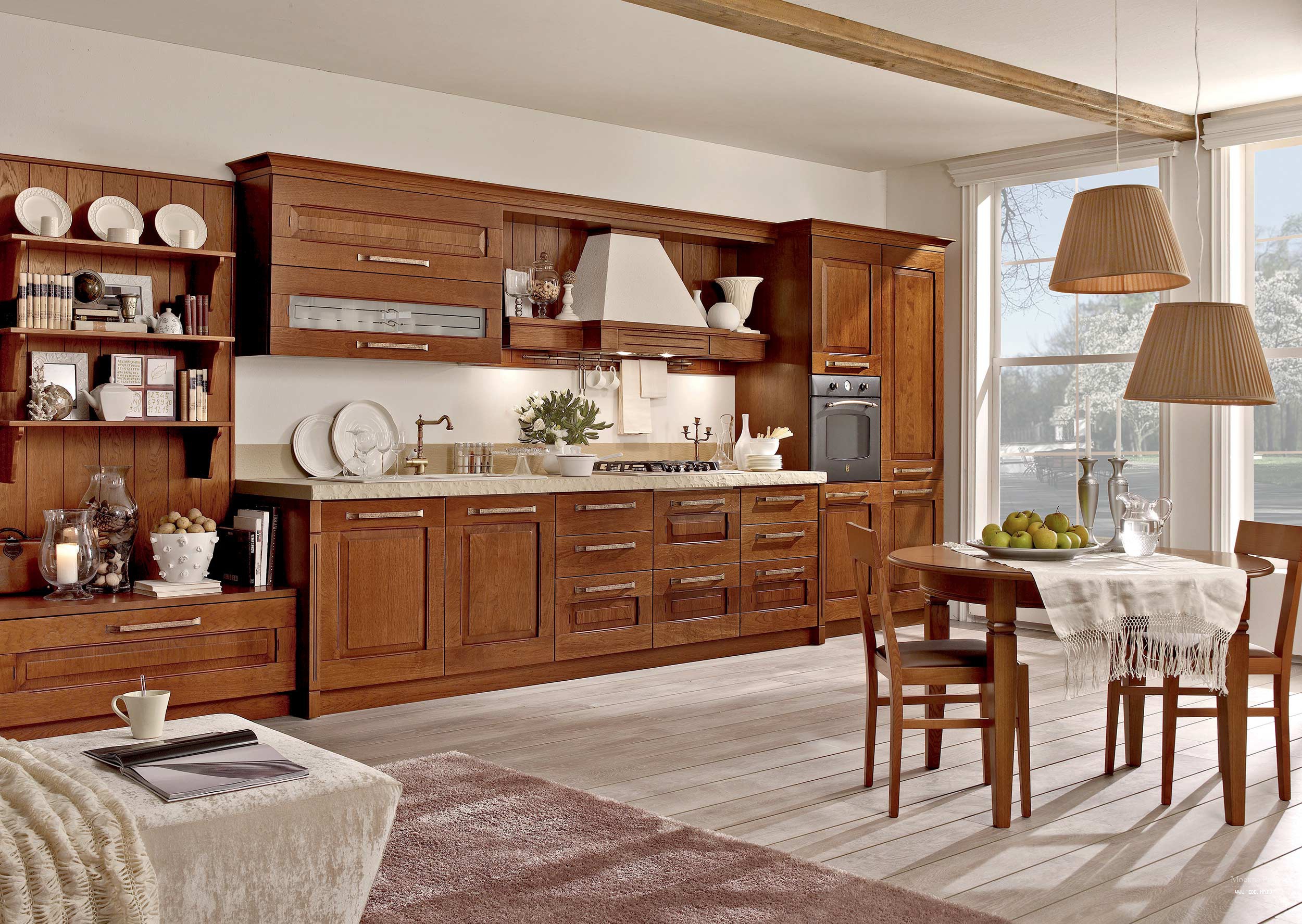 - В каком стиле можно оформить кухню из массива дерева