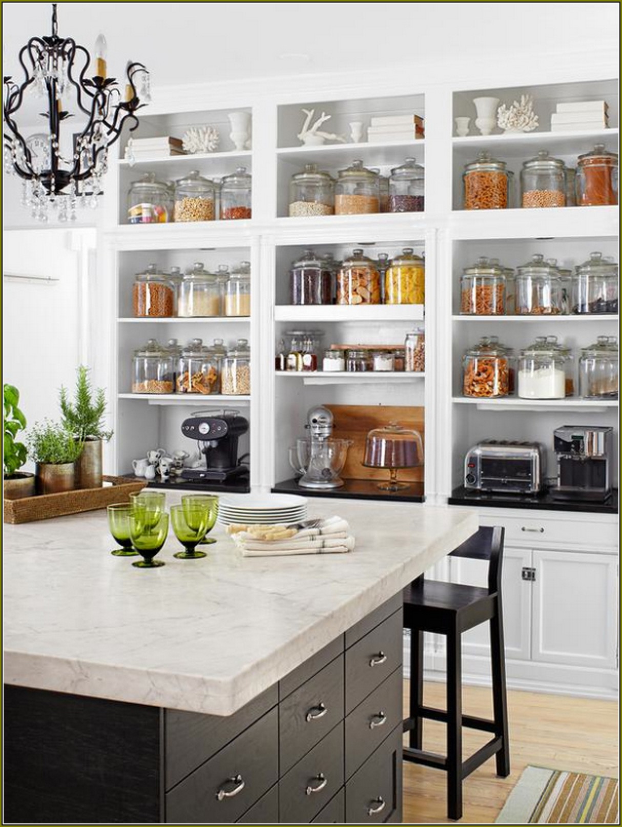 Открытый стеллаж получает плохую репутацию, потому что мы склонны ассоциировать художественные и скомпонованные вещи с хрупкими и прочными. Разложите открытые стеллажи так, чтобы вам было удобно. Приобретите табурет, если вам нужно подняться на более высокие полки. Делайте вещи удобными и меняйте их, если это не так.В конце концов, именно так это делают кухни ресторанов (и они призваны упростить приготовление пищи).