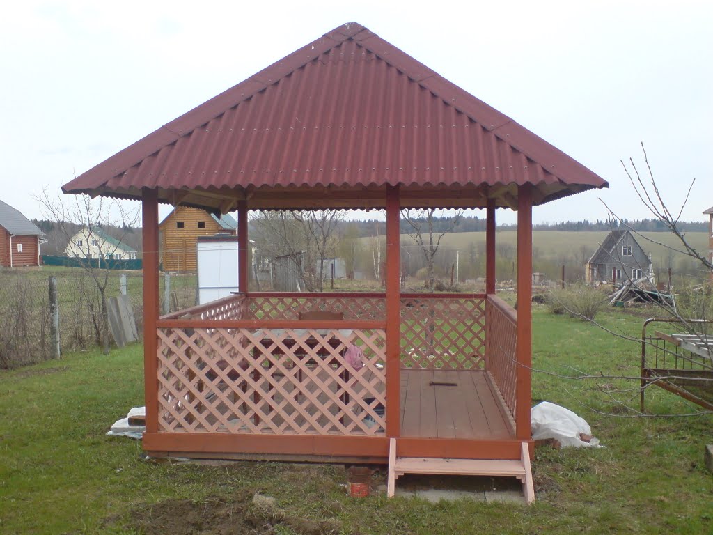 В данной статье будут рассмотрены примеры деревенских и дачных беседок, построенных из обычных материалов, которые остались на даче после какого-нибудь масштабного строительства, либо просто пролежавших «мертвым грузом» несколько лет.
