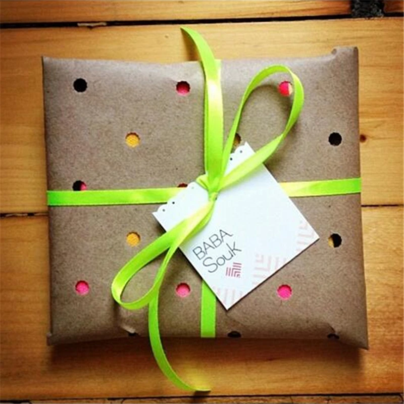 - Красивая оберточная бумага, в которую можно завернуть банальные колготки или желанную картину.Необязательно её цвет должен быть приторно розовым или кислотно салатным. Вполне достаточно выбрать бумагу спокойных оттенков с мелким рисунком или надписями латиницей.