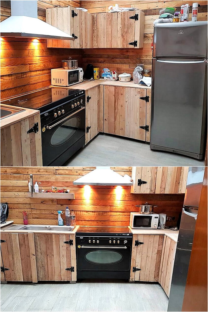 Когда нет возможности приобрести мебельный гарнитур фабричного изготовления, бюджетным вариантом может стать кухонная мебель, изготовленная своими руками из подручных материалов. Для такого творчества проще всего использовать палеты – грузовые поддоны. Стоимость их невелика, а если что-нибудь не получится, можно легко заменить испорченную часть конструкции.