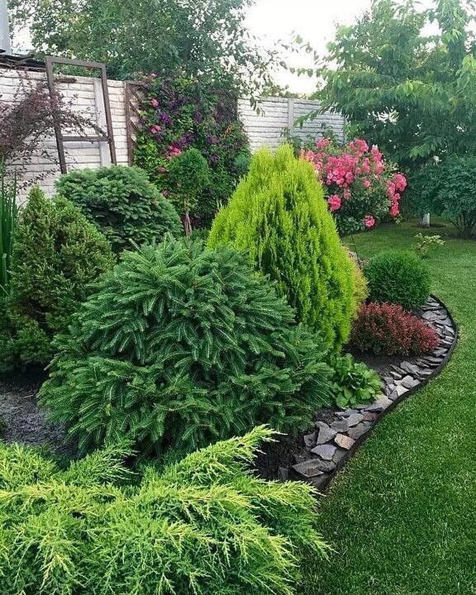 Также ее можно использовать как фон заднего плана для более низких хвойников и декоративных композиций из цветов.