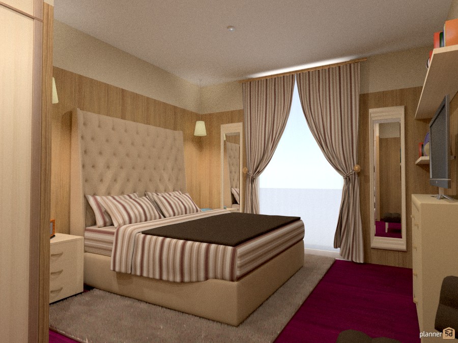 Шторы выполняют важную функцию, отделяя спальню от шумов окружающего мира и от яркого света, не дающего расслабиться. Фактура, материал, цвет и стиль ткани для занавеси может и находиться в общей стилистической концепции и в то же время иметь индивидуальность. Для подобного хода следует выбирать ткань на пол-оттенка темнее или светлее основной цветовой гаммы. Еще одним моментом, позволяющим по-особому обыграть в дизайне шторы, это текстура и рисунок на них. Конечно, для небольших помещений не стоит использовать их с крупным рисунком. Это визуально уменьшит пространство. Но небольшой рисунок, не слишком вычурный и режущий глаз, поможет добавить индивидуальности.