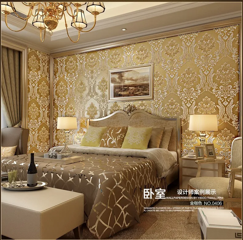 Эти большие разновидности золотых обоев делают их подходящими для спален.