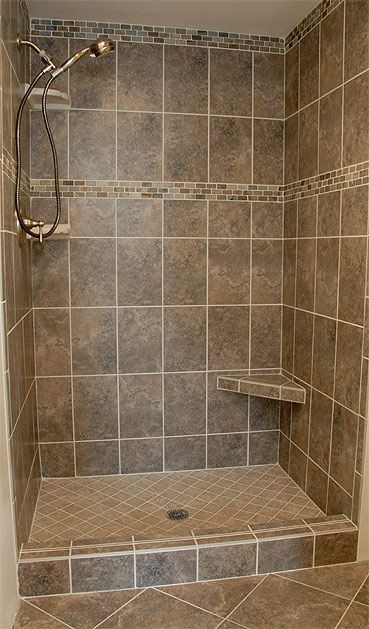 Если вы делаете душ из плитки – используйте плитку большого формата на стенах. Также используйте плитку большого формата на полу душевого поддона (обратите внимание — для этого потребуется другой поддон и система слива).
